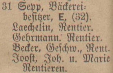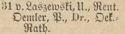 Zoppoter Chaussee 31: Paul Oemler. Hugo Laschewski. Helene Kuhn zd. Knoch. Spis z 1895 roku. Przekazała Grażyna Niemyjska.