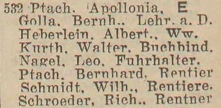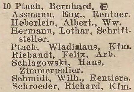 Bernhard Ptach. Książka adresowa z 1929 roku. Zbiory Pomorskiej Biblioteki Cyfrowej.