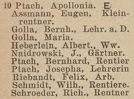 Bernhard Ptach. Książka adresowa gminy Oliwa z 1925 roku. Zbiory Pomorskiej Biblioteki Cyfrowej.