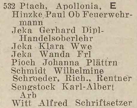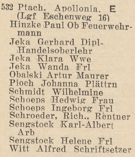 Adres: Adolf-Hitler-Straße 532. Gerhard Jeka (ur. 1912, zm. 07.05.1944- …). Źródło: , 05.1944 poz. 50.