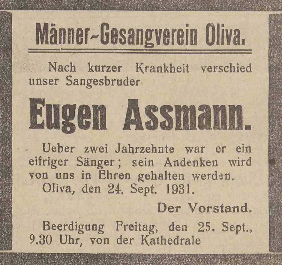 Eugen Assmann. Danzig-Olivaer Zeintung nr 224 z 24. 09. 1931 r.