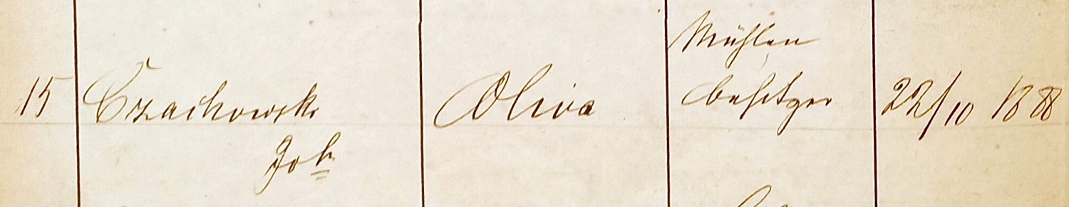 Johannes Czachowski. Baukonholle Oliva IXX. Wpis z 22. 10. 1888. Przekazała Grażyna Niemyjska.