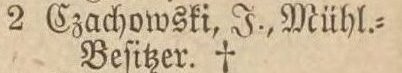 Czachowski, Johannes, Mühlenbesitzer.