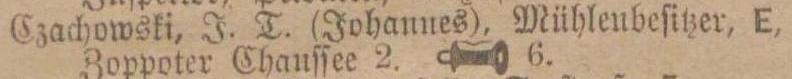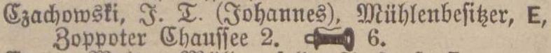 Johannes Czachowski. Nr tel. 6. Książka adresowa Sopot-Oliwa z 1902 r. Zbiory Pomorskiej Biblioteki Cyfrowej.