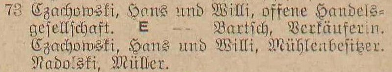Hans & Willy Czachowski. Książka adresowa gminy Oliwa z 1916 roku. Zbiory Mirosława Piskorskiego.