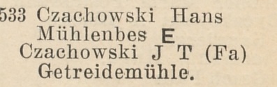 Hans Czachowski. Książka adresowa z 1927 roku. Zbiory Pomorskiej Biblioteki Cyfrowej.