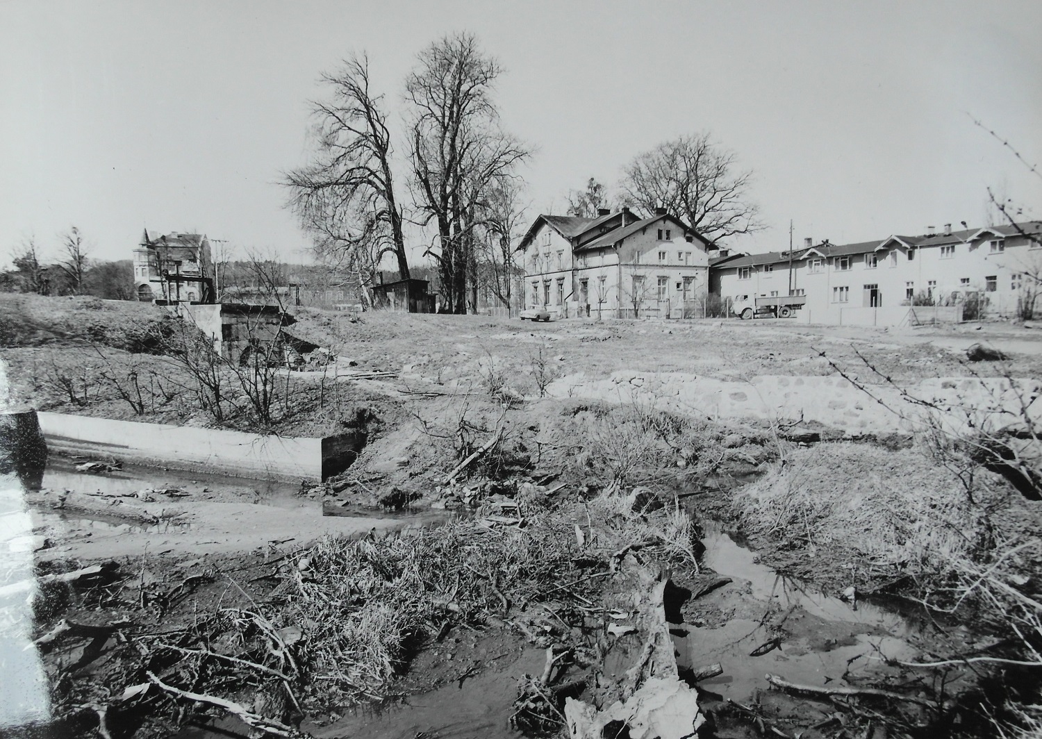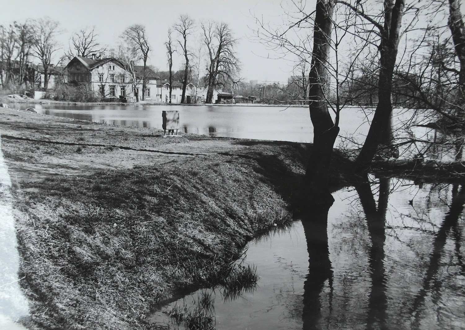 Staw i młyn widziany z ul. Grunwaldzkiej. Zima 1962-1963 roku. Z albumu rodzinnego Hieronima Furmńskiego.