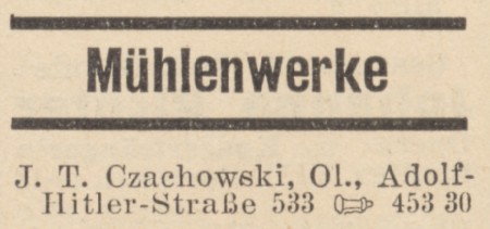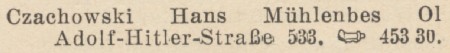 J. T. Czachowski. Hans Czachowski. Książka adresowa z 1940-1941 roku. Zbiory TPG Strwfa Historyczna WMG.