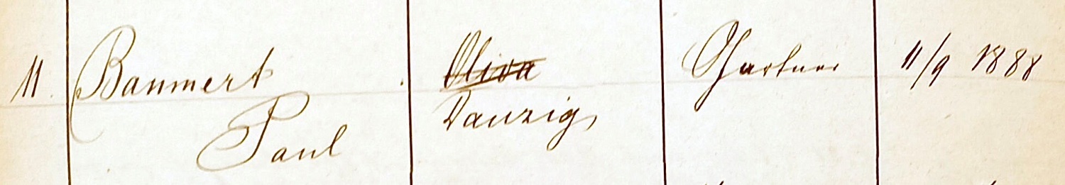 Paul Baumert. Baukonholle Oliva IXX. Wpis z 11. 09. 1888. Przekazała Grażyna Niemyjska.