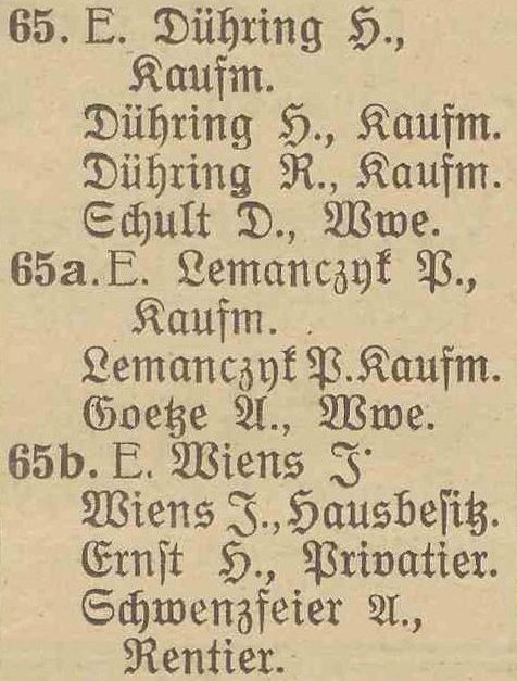 H. Dühring. P. Lemanczik. J. Wiens. Książka adresowa gminy Oliwa z 1910 roku. Zbiory Pomorskiej Biblioteki Cyfrowej.