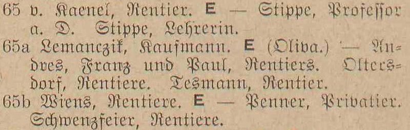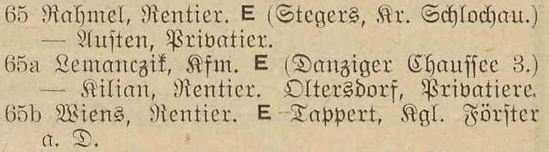 Rahmel. Lemanczik. Wiens. Książka adresowa gminy Oliwa z 1913 roku. Zbiory Pomorskiej Biblioteki Cyfrowej.