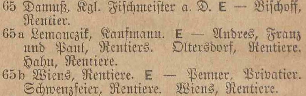 Damuß. Lemanczik. Wiens. Książka adresowa gminy Oliwa z 1916 roku. Zbiory Mirosława Piskorskiego.
