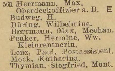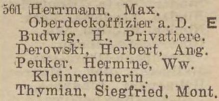 Herrmann, Max, starszy oficer w stanie spoczynku (Ober- dedoffizier a. D.).