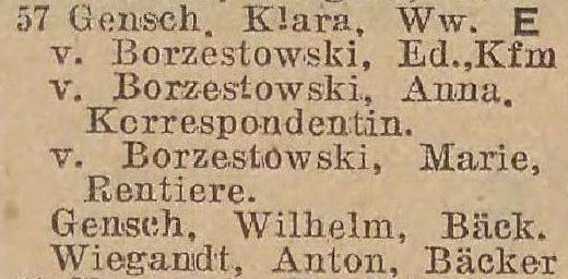 v. Borzestowski, Edmund, pomicnik handlowy (Handlungsgehilfe).