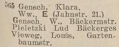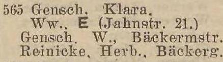 Klara Gensch. Książka adresowa z 1929 roku. Zbiory Pomorskiej Biblioteki Cyfrowej.