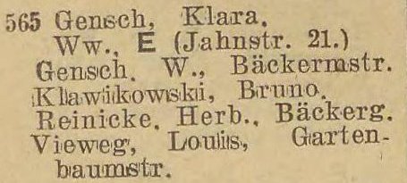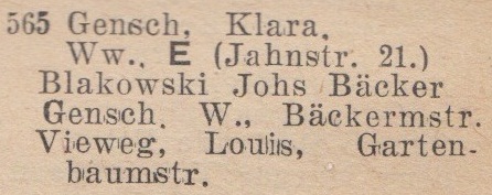 Klara Gensch. Książka adresowa gminy Oliwa z 1925 roku. Zbiory Pomorskiej Biblioteki Cyfrowej.