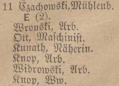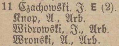 Adres: Adolf-Hitler-Straße 575. Antoni Knop (ur. 1864, zm. 20.09.1944 - krwawienie mózgu). Źródło: , 09.1944 poz. 86.