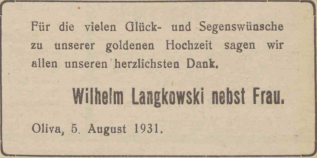 Wilhelm Langkowski. Danzig-Olivaer Zeintung nr 181 z 05. 08. 1931 r.