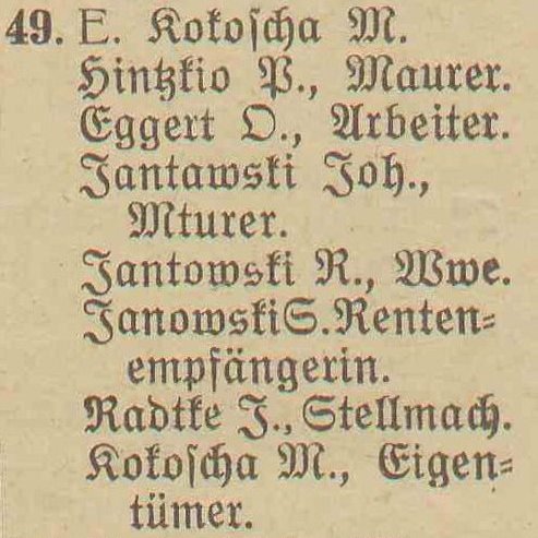 M. Kokoscha. Książka adresowa gminy Oliwa z 1909 roku. Zbiory Pomorskiej Biblioteki Cyfrowej.