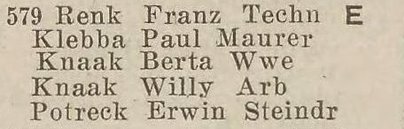 Książka adresowa z roku (Zoppoter Chaussee 13):