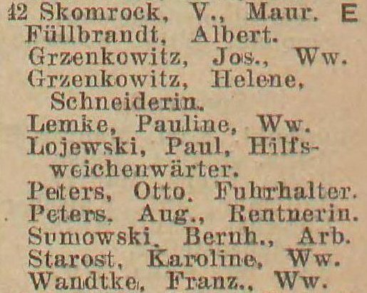 Skomrock. Książka adresowa gminy Oliwa z 1916 roku. Zbiory Mirosława Piskorskiego.