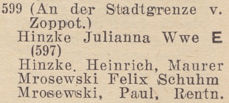 Książka adresowa z roku (Zoppoter Chaussee 22):