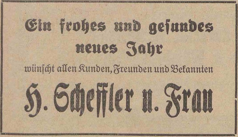 Hans Scheffler. Podziękowania noworoczne, Olivaer Zeitung nr 305 z 31. 12. 1929.