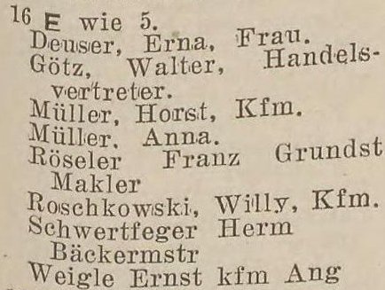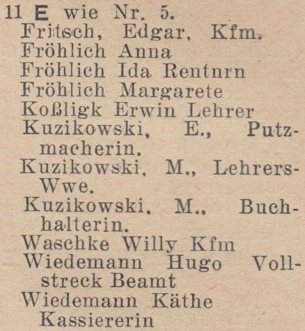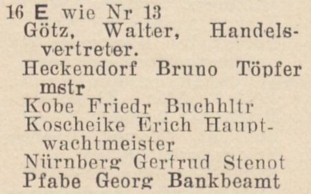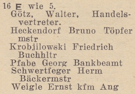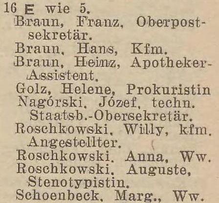 W latach 1931-1942 właścicielem budynków nr 14-17 był Wilhelm Werner. Od 1931 do 1939 r. był też właścicielrm domór nr 5-13.