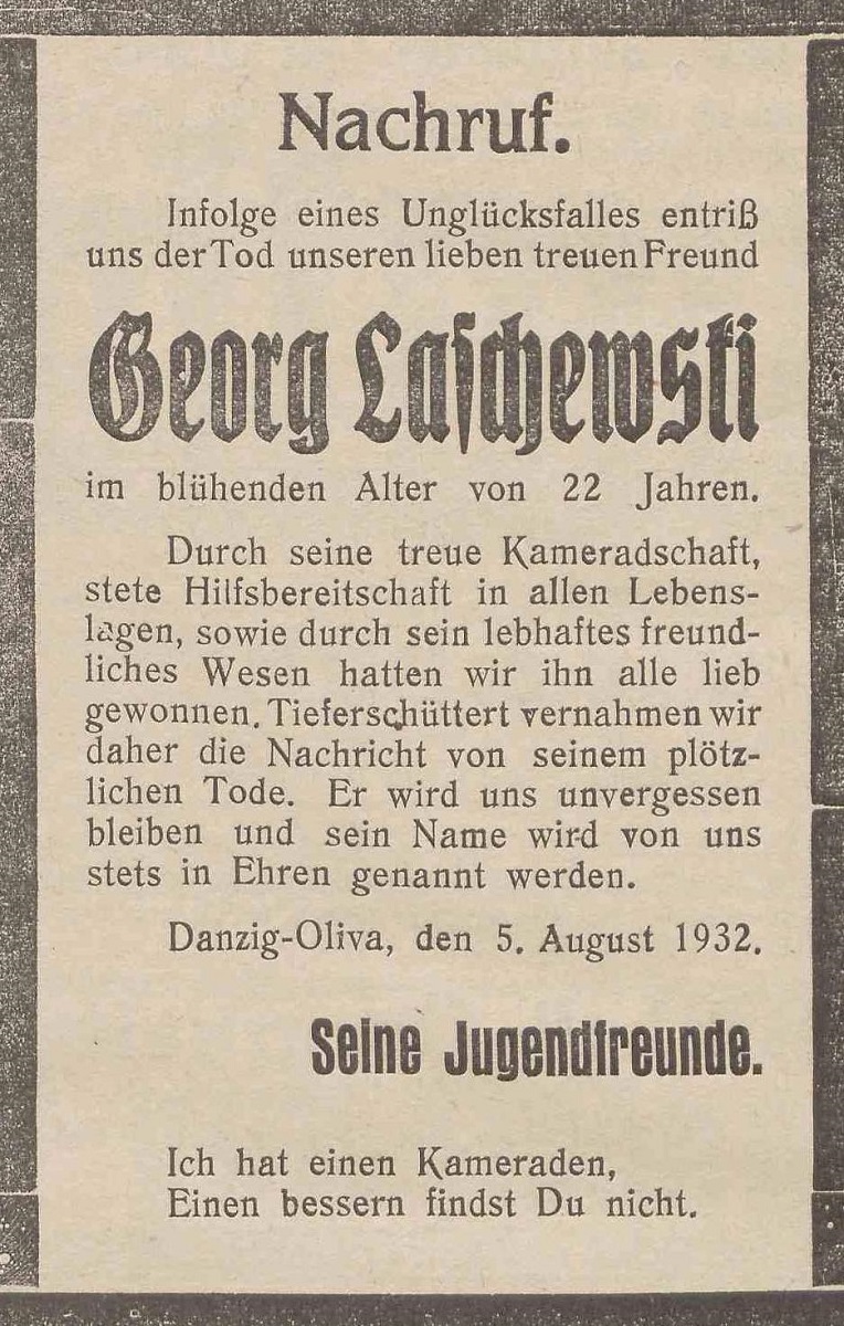 Georg Laschewski. Danzig-Olivaer Zeintung nr 182 z 05. 08. 1932 r.