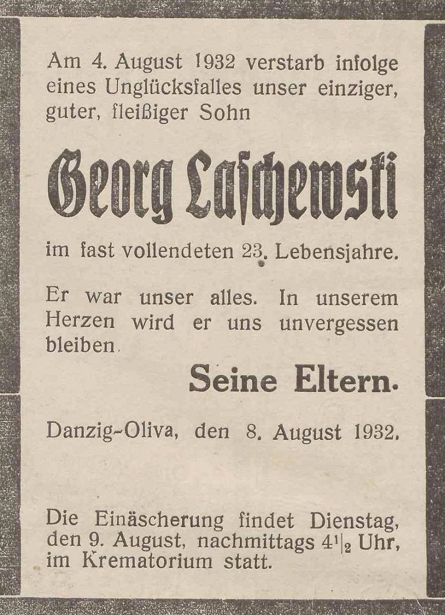 Georg Laschewski. Danzig-Olivaer Zeintung nr 184 z 08. 08. 1932 r.
