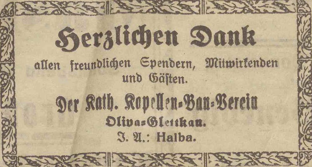 Kath. Kapellen-Ban-Verein. J. A.: Halba. Olivaer Zeintung nr 49 z 27. 02. 1924 r.