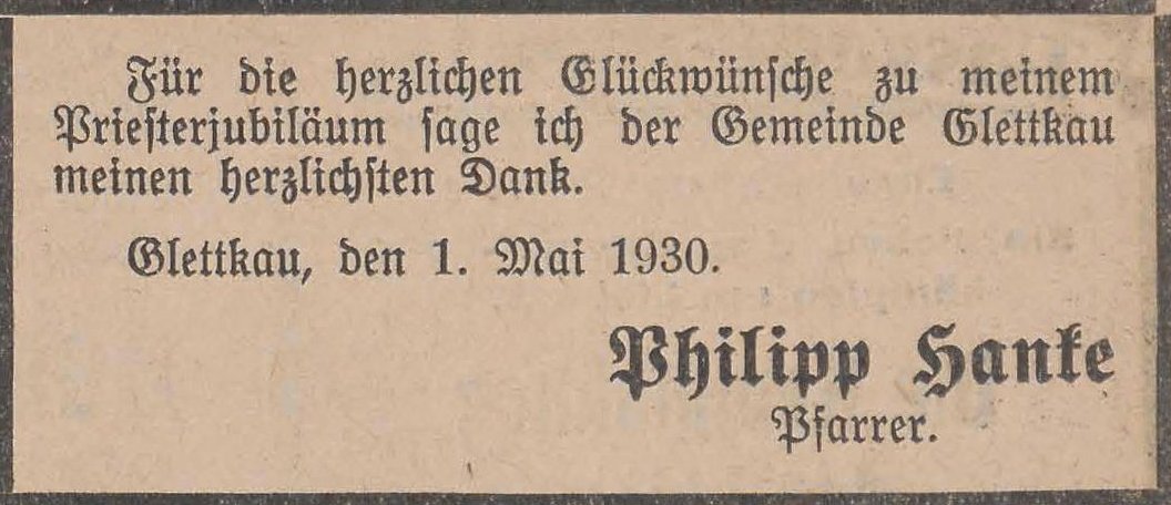 Pastor Philipp Hanke. Danzig-Olivaer Zeintung nr 3 z 01. 05. 1930 r.