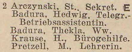 Schmidtke, Bertha, pracownica biurowa (Bürohilfsarbeiterin).