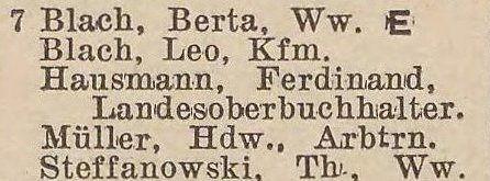 Berta Blach. Książka adresowa z 1926 roku. Zbiory Pomorskiej Biblioteki Cyfrowej.