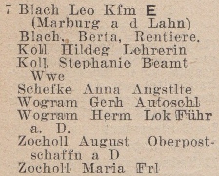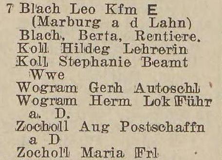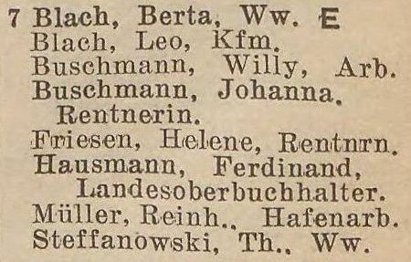 Berta Blach. Książka adresowa z 1931 roku. Zbiory Pomorskiej Biblioteki Cyfrowej.