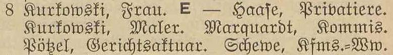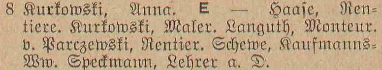 Anna Kurkowski. Książka adresowa gminy Oliwa z 1916 roku. Zbiory Mirosława Piskorskiego.