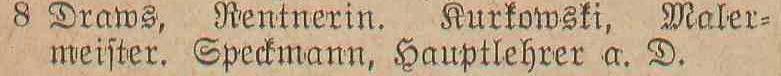 Spors, Johann S, urzędnik miejski w stanie spoczynku (Stadtsekretär a. D.).
