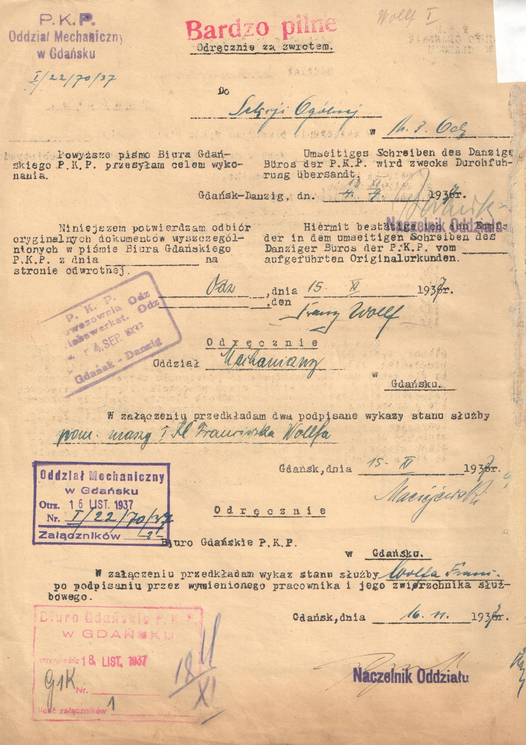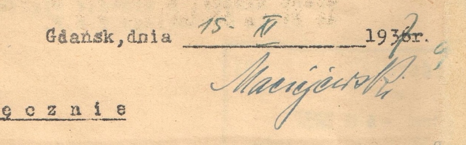 Podpis Antoniego Maciejewskiego na dokumencie wystawionym przez P.K.P. Oddział Mechaniczny w 1937 roku. www.Allegro.pl.