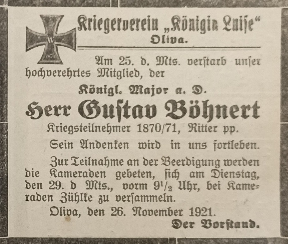 Böhnert, Gustav, major w stanie spoczynku (Major a. D.).
