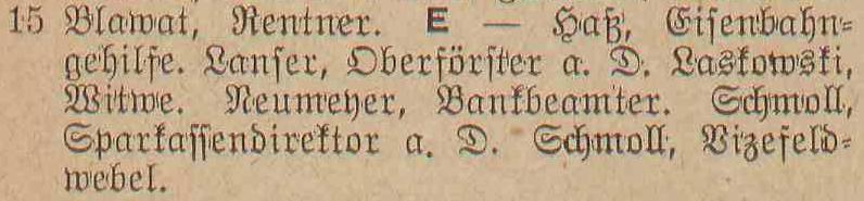 Baehr, Gustav, miejski gajowy w stanie spoczynku (staatl. Hegemeister a. D.).