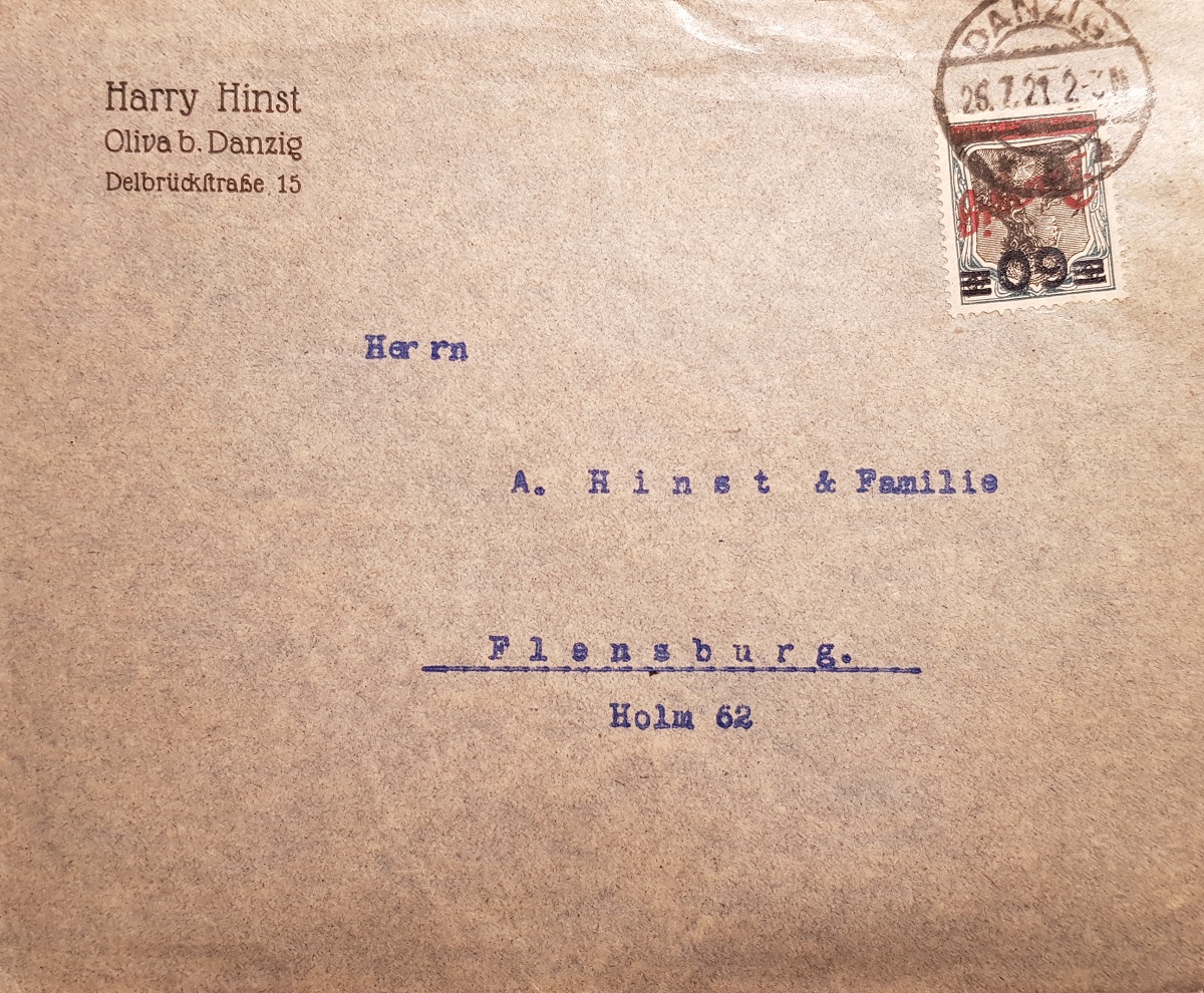 Harry Hinst. Delbrückstraße 15. Wysłano 26. 7. 1921 roku. Przekazał Mirosław Piskorski.