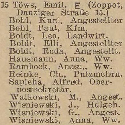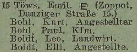 Emil Töws. Książka adresowa z 1926 roku. Zbiory Pomorskiej Biblioteki Cyfrowej.