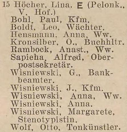 Lina Höcher. Książka adresowa z 1928 roku. Zbiory Pomorskiej Biblioteki Cyfrowej.