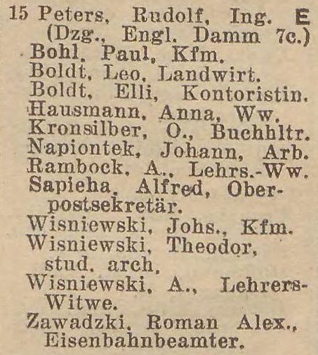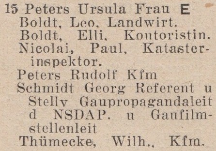 Ursula Peters. Książka adresowa z 1939 roku. Zbiory Krzysztoga Gryndera.