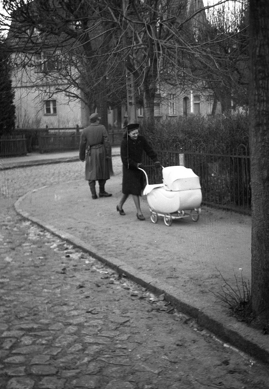 Na wprost budynek przy ul. Kaprów nr 15. Fotografia z 1946 roku. Zbiory Piotra Leżyńskiego.