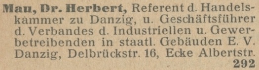 Herbert Mau. Książka telefoniczna z 1925 roku. Zbiory Mirosława Piskorskiego.