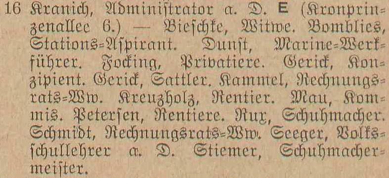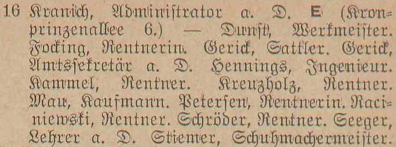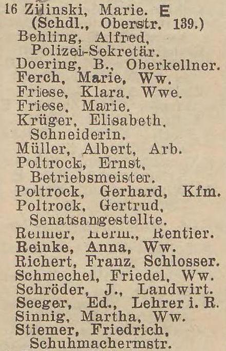Gneisenaustraße 16, Schroeder Frieda geb. Schroeder, Angestellte