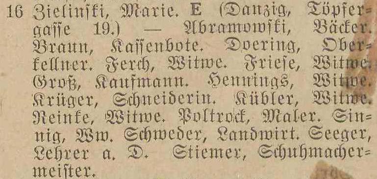 Marie Zelinski. Książka adresowa z 1936-1937 roku. Zbiory Pomorskiej Biblioteki Cyfrowej.