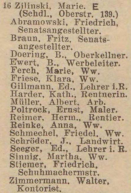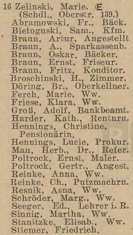 Marie Zelinski. Książka adresowa z 1927 roku. Zbiory Pomorskiej Biblioteki Cyfrowej.