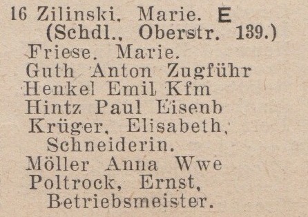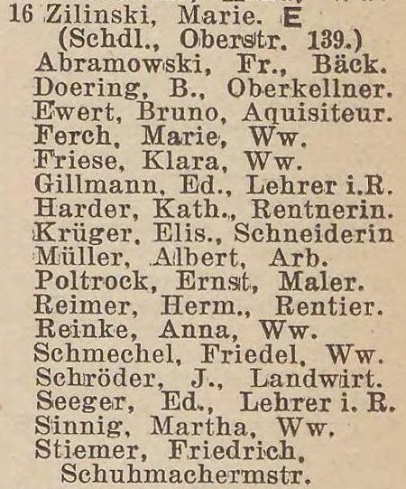 Marie Zelinski. Książka adresowa z 1933 roku. Zbiory Pomorskiej Biblioteki Cyfrowej.